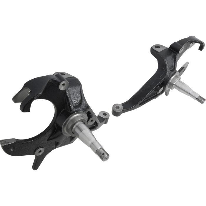 Drop spindle set for a variety of GM vehicles to provide a 2" drop. Each set is manufactured in cast iron and comes finished in black. Drop spindles are the best way to lower you truck while maintaining a stock ride and handling. Replaces LH and RH sides.