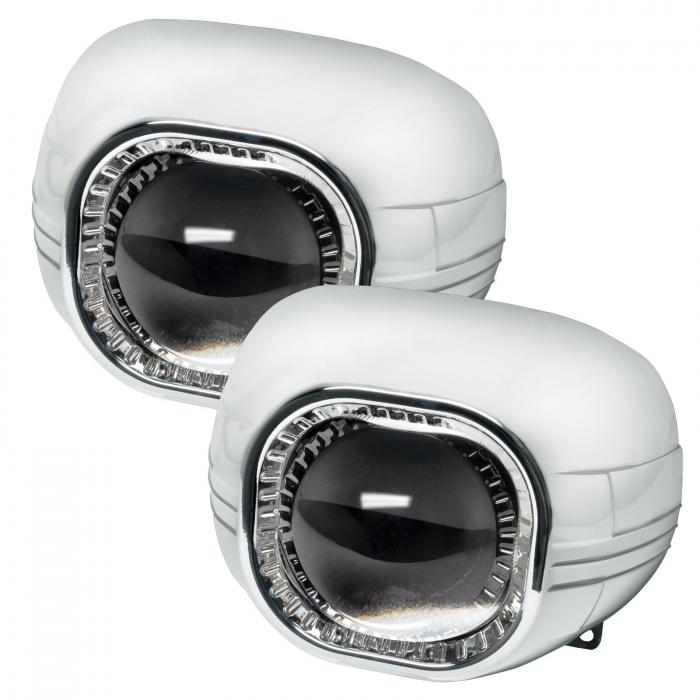 Contents | (2x) ORACLE Square D2S Projectors, (2x) QQ Square Projector Bezels, Adapter and Locking Plates Included |