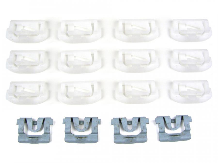 PCK-934-78 is a 16-piece clip kit containing two styles of fasteners — plastic push-type clips and metal retainers — reverse-engineered from originals for accurate reproduction. Designed to secure interior and exterior trim, panels, and moldings, these clips restore factory fitment and prevent rattles, misalignment, and panel damage. Durable materials and precise dimensions provide reliable retention and long service life while remaining easy to install during restoration or routine maintenance.