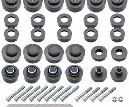 This complete rubber bushing kit is a must have for any complete restoration. Each kit contains 22 rubber bushings, which are necessary for mounting the body. Each molded rubber bushing is manufactured to factory specifications to ensure a perfect fit. Steel sleeves add rigidity where required. Sold as a kit, hardware is not included.