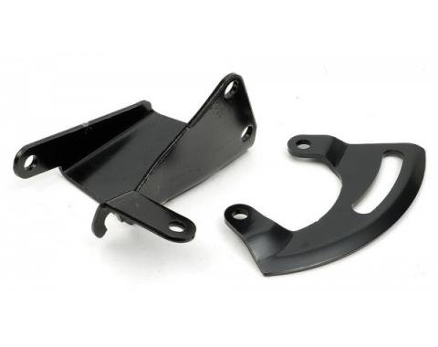 Correct reproduction power steering pump rear brace for use with long neck water pump small block engines. OE gauge, accurate stamping. Officially Licensed GM Restoration Parts from Classic Headquarters.