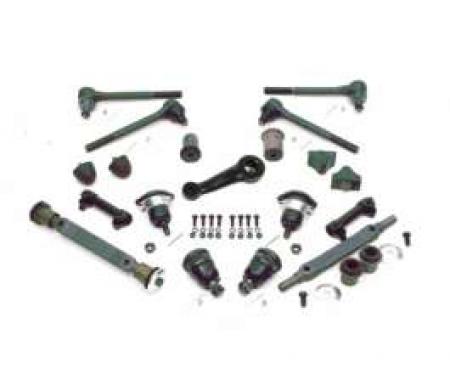 Replaces Worn Suspension Components Kit Includes Original Rubber Components And Upgraded Design Where Applicable Kit Includes: 2 Upper Ball Joints 2 Lower Ball Joints 2 Outer Tie Rods 2 Inner Tie Rods 2 Adjusting Sleeves 2 Front Upper Control Arm Bumpers 2 Front Lower Control Arm Bumpers 4 Front Upper Control Arm Bushings 2 Upper Control Arm Shafts 4 Front Lower Control Arm Bushings 1 Pitman Arm, 8 Rear Control Arm Bushings (Upper & Lower) 2 Rear End Bumpers 1st Design Front End, Must Have Front Lower Control Arm Bushings, Large 1.90, small 1.67 Does Not Include Sway Bar Hardware, Idler Arm Or Center Link This El Camino replacement front and rear suspension kit has been manufactured to meet or exceed factory specifications and performance. You will find the fit and function will work perfectly for your vehicle. You will also be pleased to know that the El Camino Store has sourced this front and rear suspension kit among other possible parts as the best choice for your repair or restoration project.