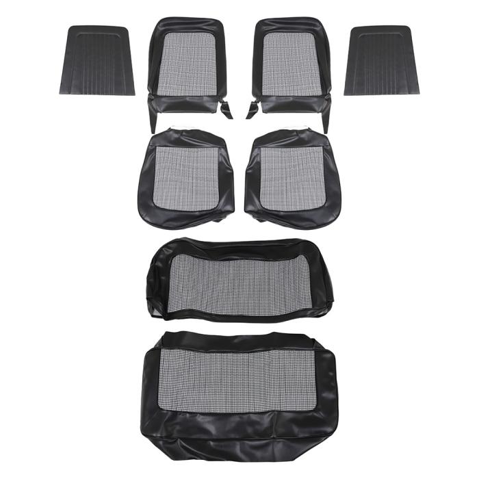 - Full sets include upholstery pieces for both front bucket seats and the rear bench seat.