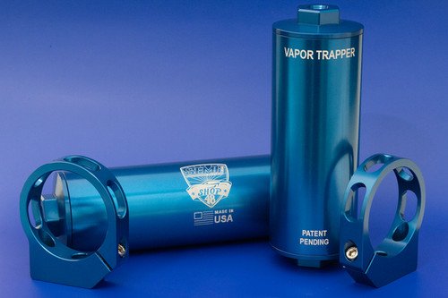 The Shop48 Vapor Trapper™ is a high-quality billet aluminum charcoal canister that eliminates fuel odors from vented fuel tanks. Its specialized charcoal media traps vapors, keeping garages and cabins fume-free.